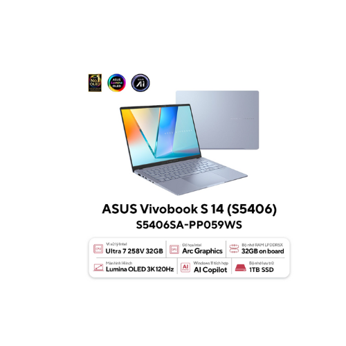 ASUS Vivobook S 14 OLED S5406SA-PP059WS : Ultra 7-258V | 32GB RAM | 1TB SSD | UMA | 14 inches 3K | Windows 11 | Xanh