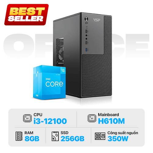 [New 100%] PC KLC-V2801D i3-12100 | 8GB | 256GB SSD | Main H610M | CASE V2801 | KM K120